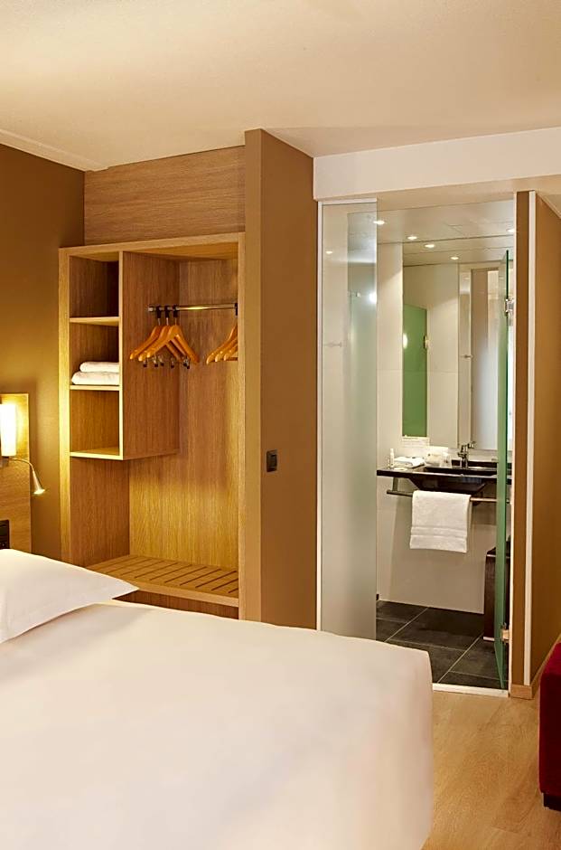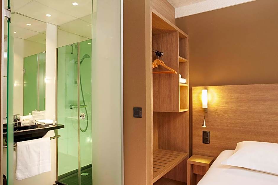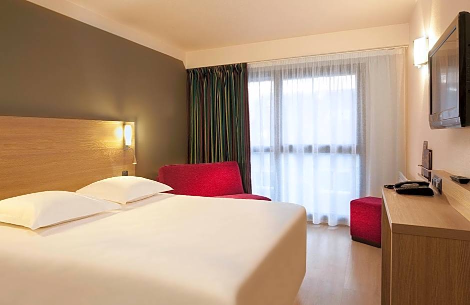 Decorated in a modern style, this room with attached bathroom feature parquet flooring, free WiFi access, and a flat-screen TV. It also has a courtesy tray.